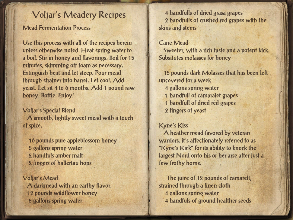 Voljar S Meadery Recipes Elder Scrolls Fandom